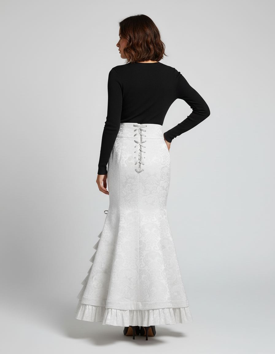 Votre Allure Inoubliable : La Jupe Trompette Satin Blanc