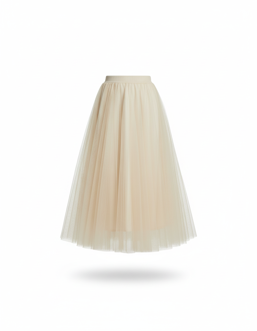 La Jupe Longue Tulle Beige Plissée : L'Élégance en Mouvement