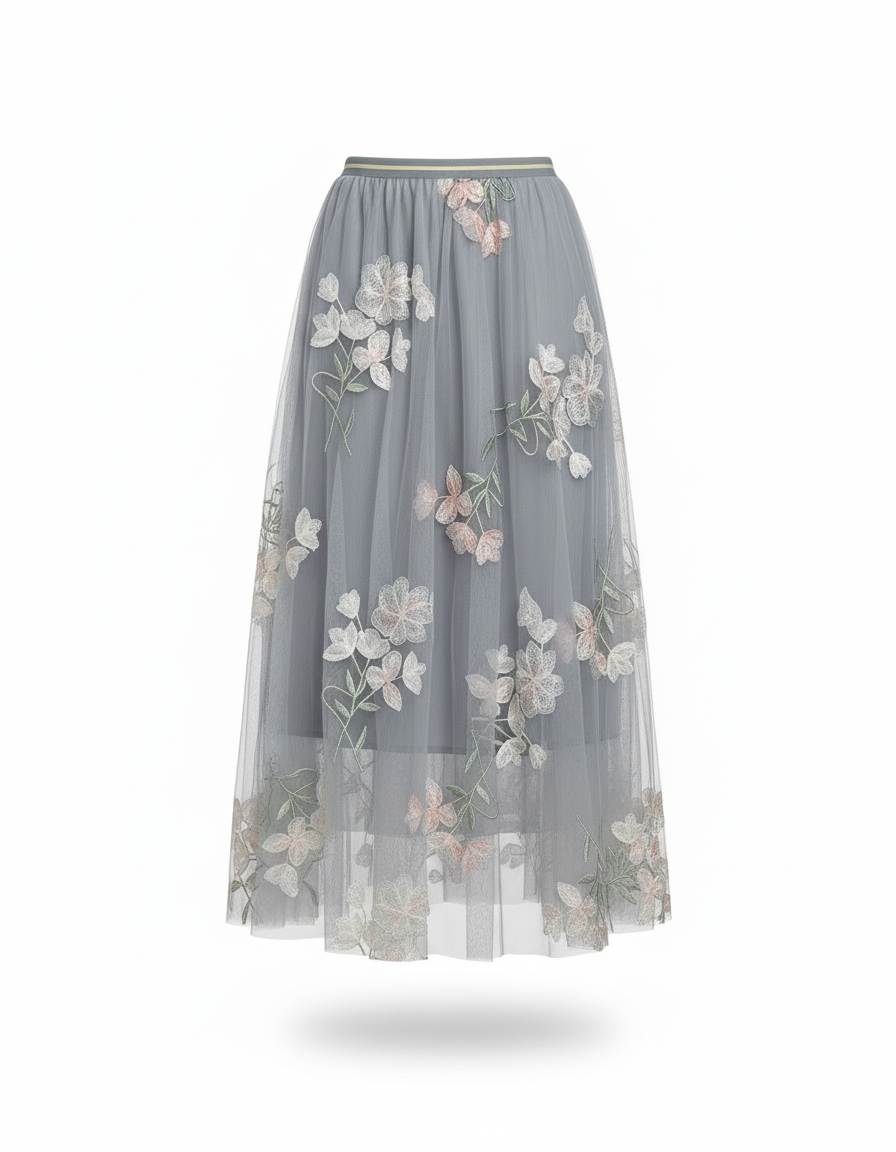 Jupe Longue Tulle Brodée Fleurie Élégante : Détails du produit