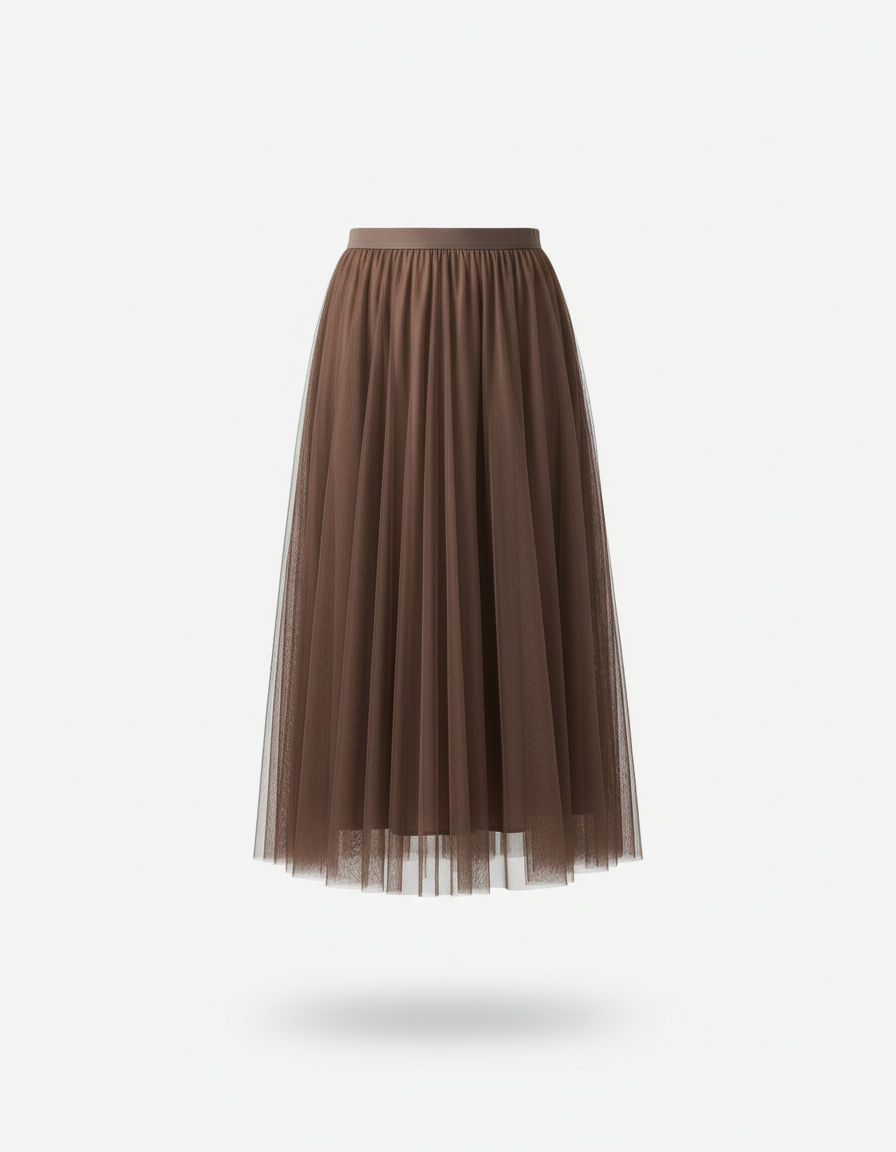 Adoptez une allure gracieuse et aérienne avec notre Jupe Longue Tulle Marron Fluide Bohème.