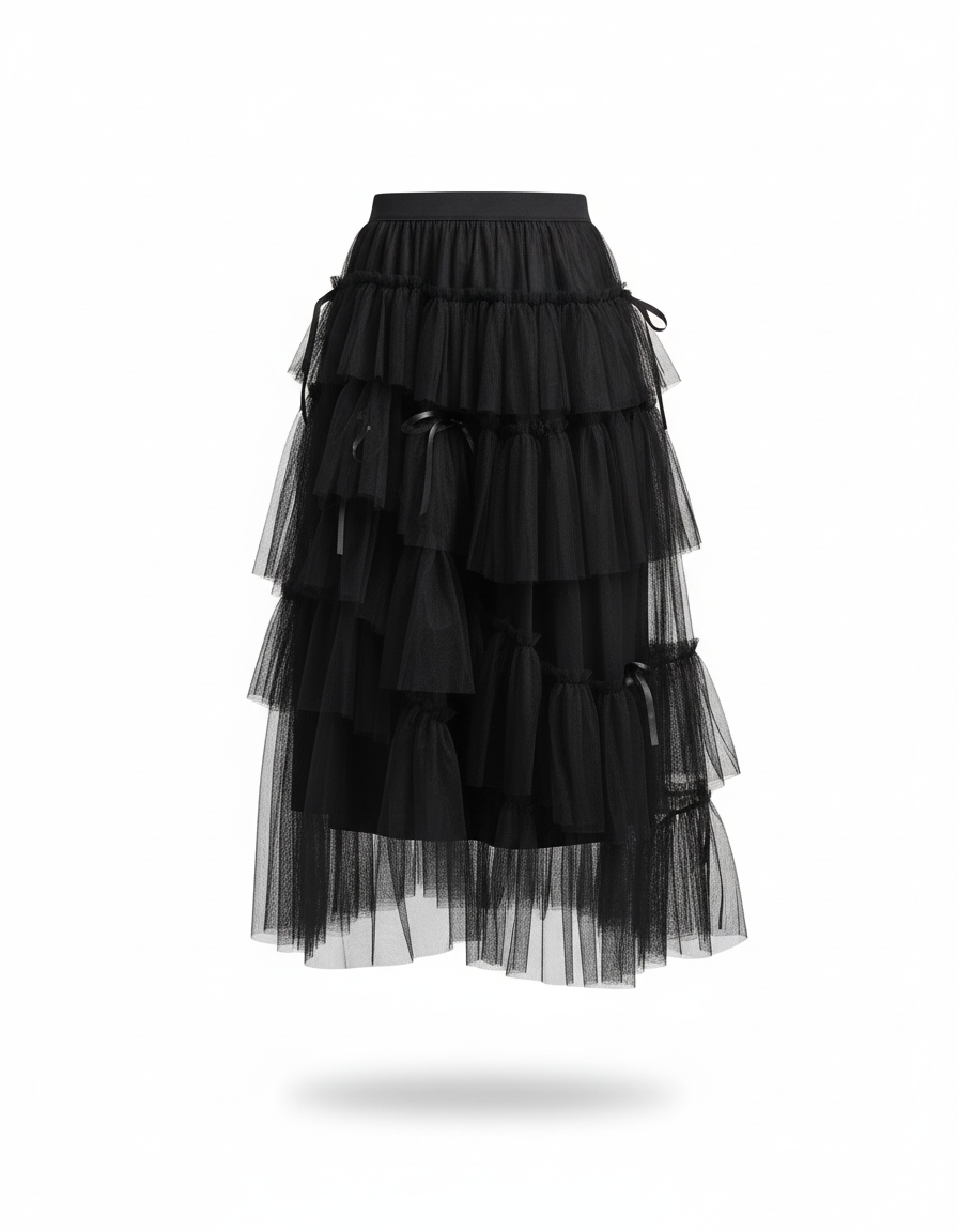 Caractéristiques de la Jupe Longue Tulle Noir Chic À Volants
