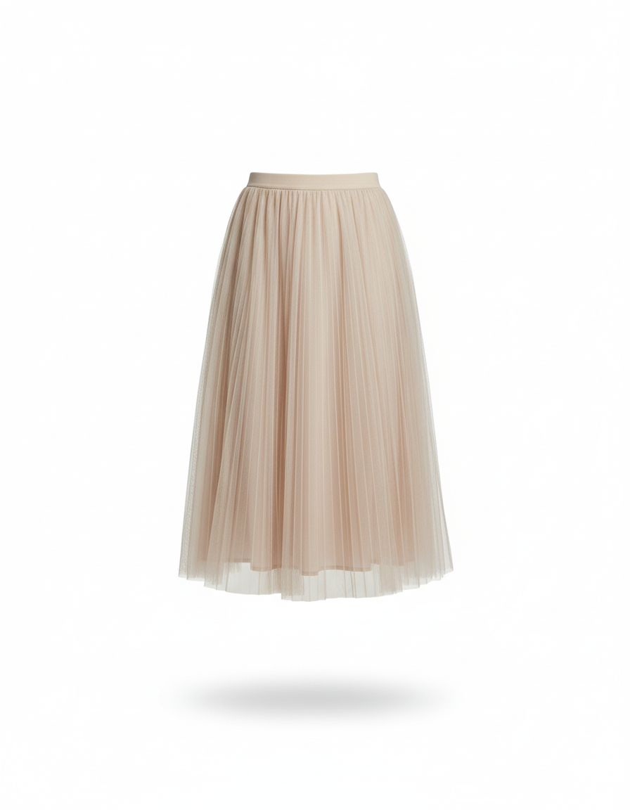 Découvrez l'Élégance Fluide de Notre Jupe Tulle Plissée Beige
