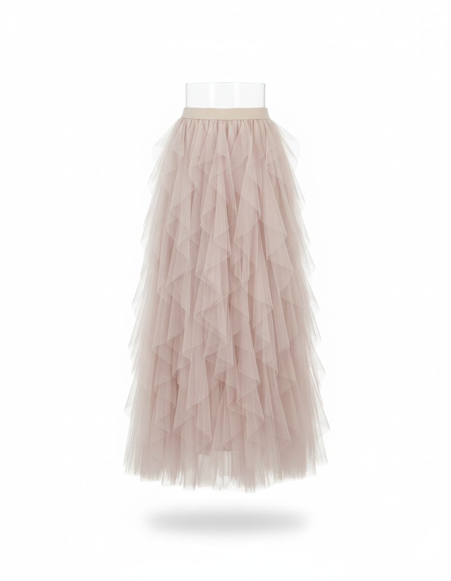 Cette jupe se distingue par la superposition experte de ses volants en tulle, offrant une texture riche et une profondeur inégalée, loin des confections ordinaires. La ceinture discrète assure un maintien parfait et une transition élégante vers votre haut, garantissant un tombé impeccable. Facile à associer avec un simple top en soie pour un look raffiné ou un pull en cachemire pour une audace décontractée, elle est la promesse d'une garde-robe où le luxe se vit au quotidien, sans effort. Adoptez la Jupe Longue Tulle Rose Chic et faites de chaque sortie un défilé personnel.