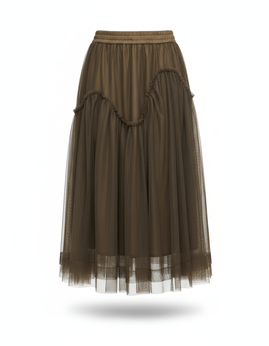 Ce qui distingue notre jupe, c'est l'harmonie parfaite entre la texture romantique du tulle et la modernité de ses volants artistiquement drapés, ajoutant une dimension unique et un mouvement captivant à chaque pas. Loin d'être une simple jupe en tulle, elle est une œuvre de design où chaque volant a été pensé pour sculpter une allure gracieuse et contemporaine. Elle vous permet d'exprimer votre individualité avec audace et raffinement, vous assurant de capter les regards sans jamais sacrifier votre bien-être. Un luxe concret, tangible, pour une femme d'exception qui valorise l'originalité et la qualité.
