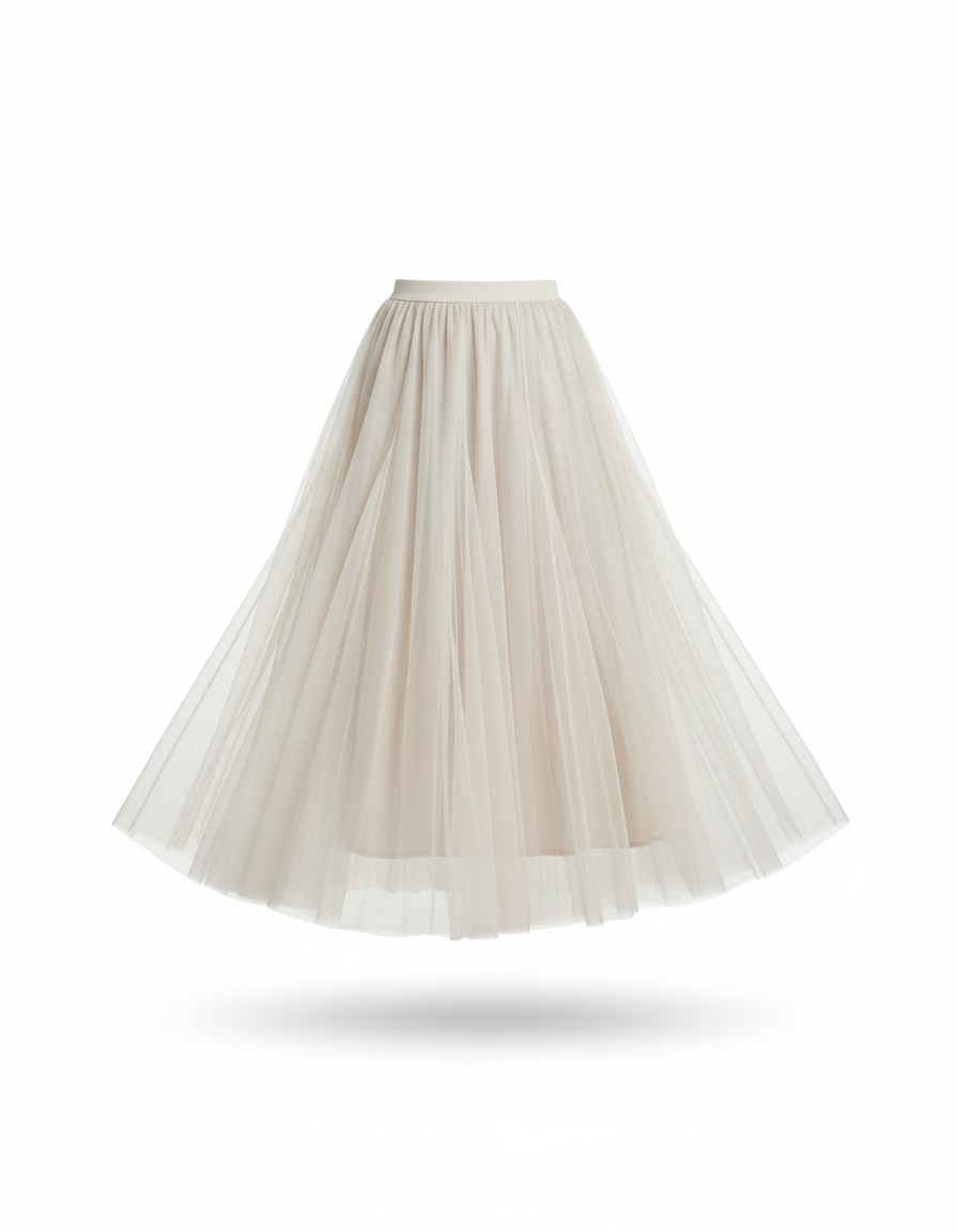 Notre Jupe Longue Tutu réinvente la grâce avec sa silhouette aérienne et son volume délicat en tulle beige. Chaque couche est pensée pour un tombé parfait, fluide et majestueux, qui accompagne chacun de vos pas avec une élégance naturelle. Conçue pour les moments d'exception, elle offre une liberté de mouvement inégalée, vous permettant de danser et de vous déplacer avec aisance, sans jamais compromettre votre allure. Le confort est au cœur de sa conception, vous enveloppant d'une douceur subtile tout au long de la journée ou de la soirée, pour que vous vous sentiez aussi bien que vous en avez l'air.