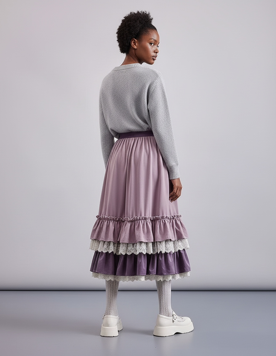 Conçue pour la femme qui ne transige pas sur l'élégance et l'originalité, notre Jupe Longue Velours Dentelle Élégante est une pièce maîtresse de raffinement. Sa coupe ample et ses volants superposés en velours doux, dans une teinte violette profonde, offrent une silhouette gracieuse et un mouvement fluide à chaque pas. Ce n'est pas une simple jupe, c'est une déclaration de style. Idéale pour celles qui recherchent un équilibre parfait entre confort luxueux et esthétique audacieuse, elle se distingue par l'harmonie inattendue de ses textures et son allure romantique moderne.