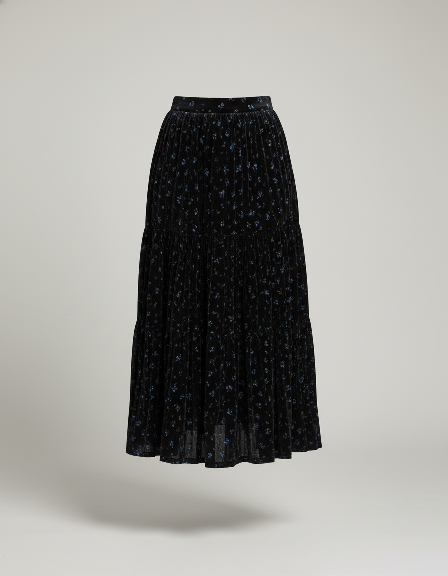 Élégance Redéfinie : La Jupe Longue Velours Floral Plissée