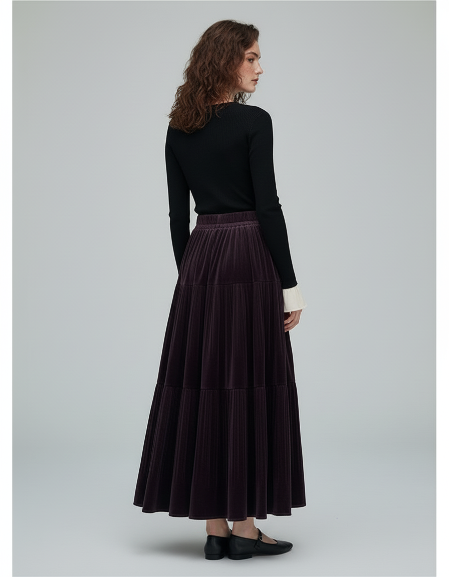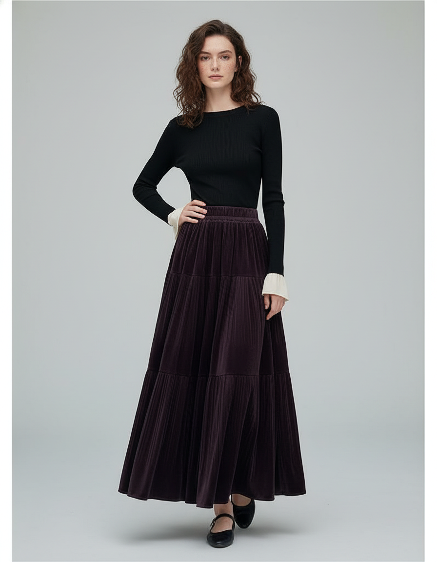 La Jupe Longue Velours Prune Plissée : L'Élégance Hivernale Redéfinie