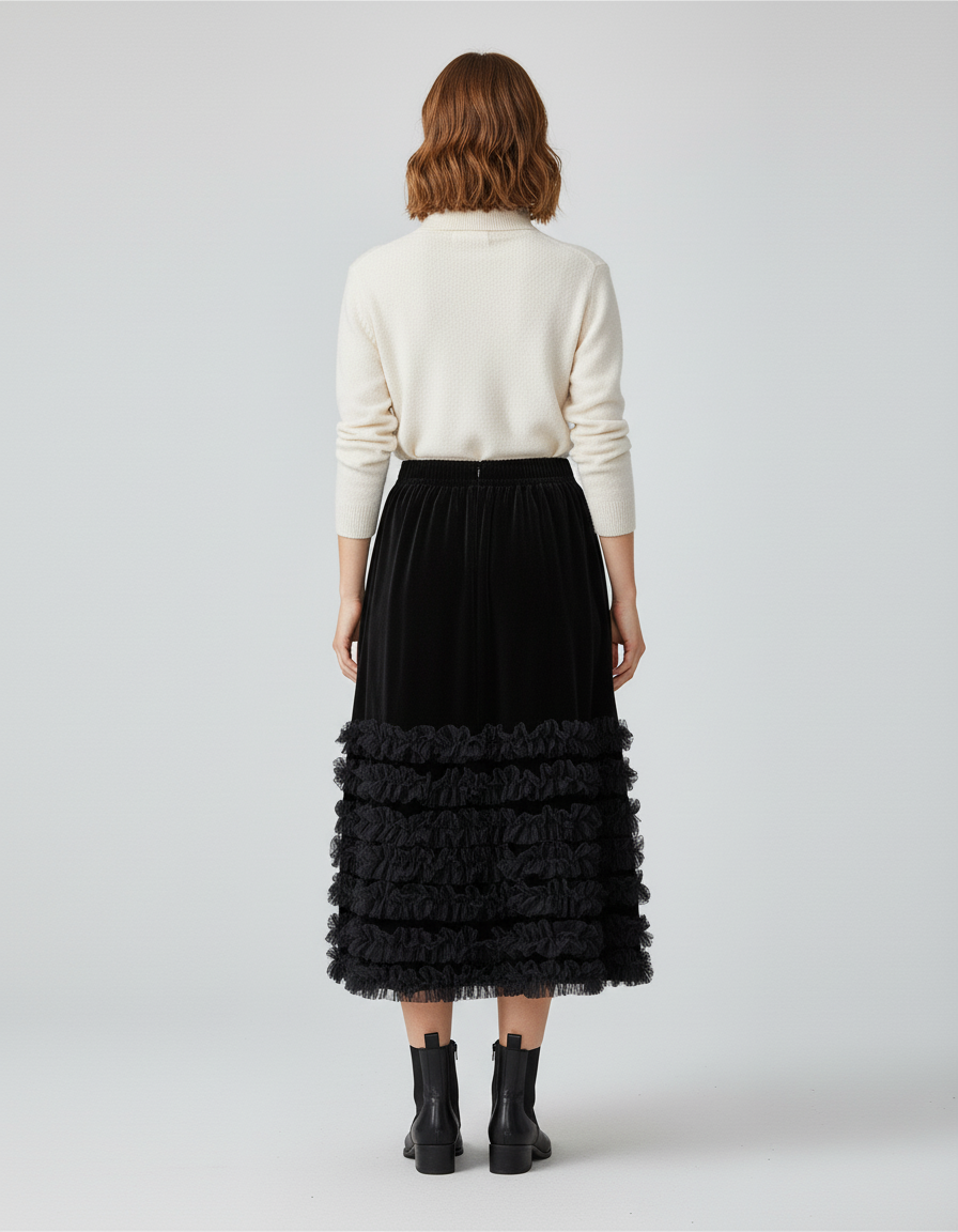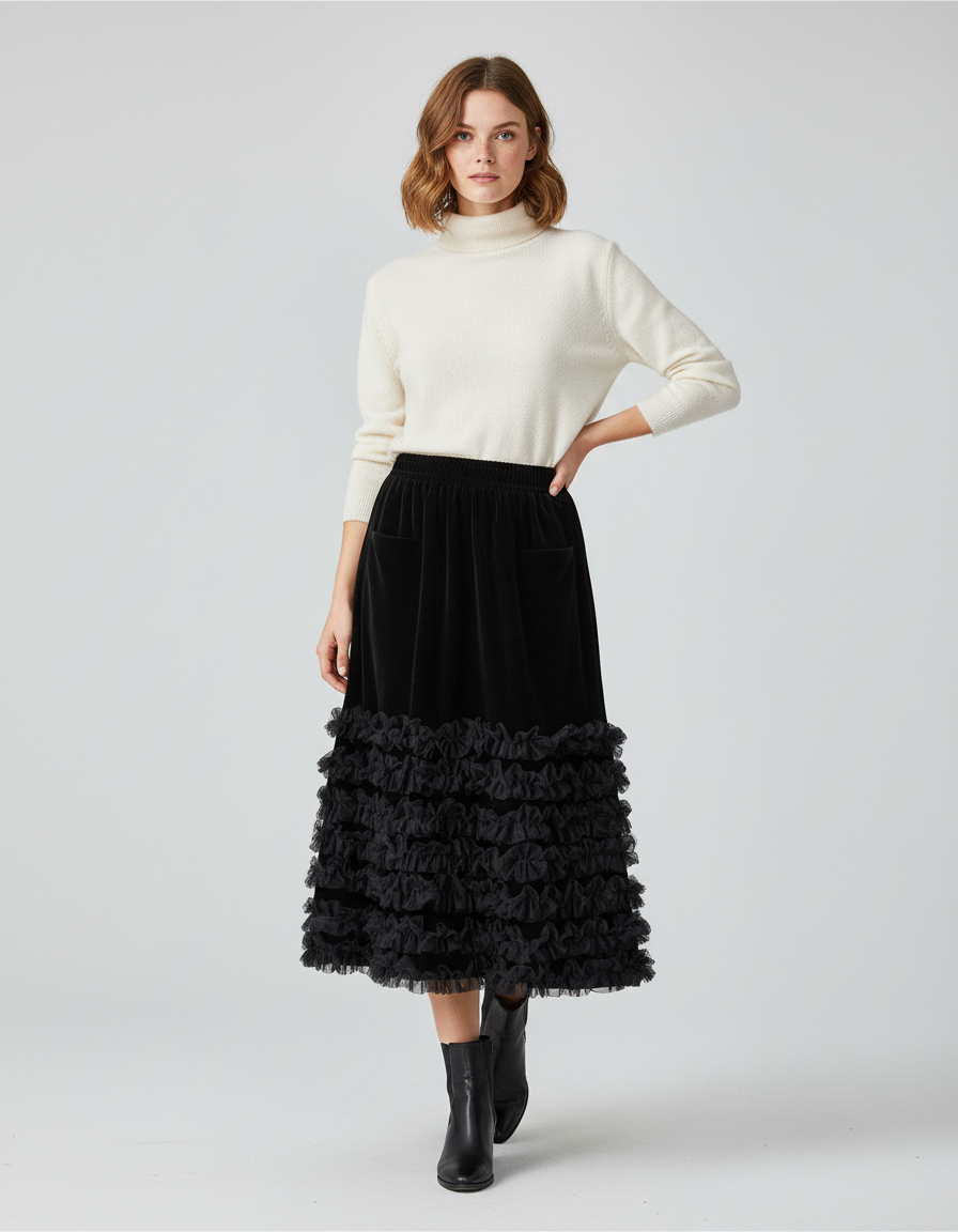 La Jupe Longue Velours Volants Noire : L'Élégance Réinventée