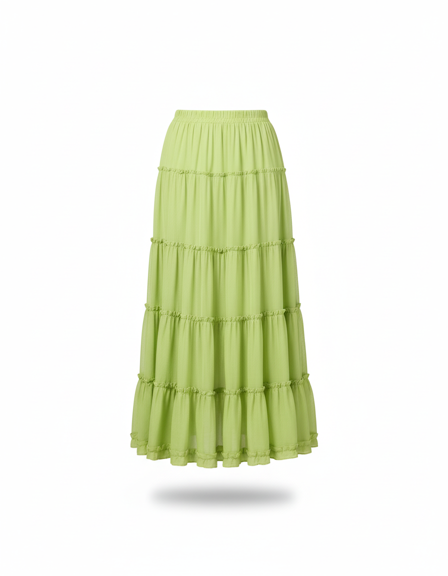 Découvrez l'élégance et le raffinement avec notre Jupe Longue Vert Citron À Volants Fluide. Parfaite pour toutes les occasions, elle allie confort et style pour sublimer votre silhouette en toute simplicité.