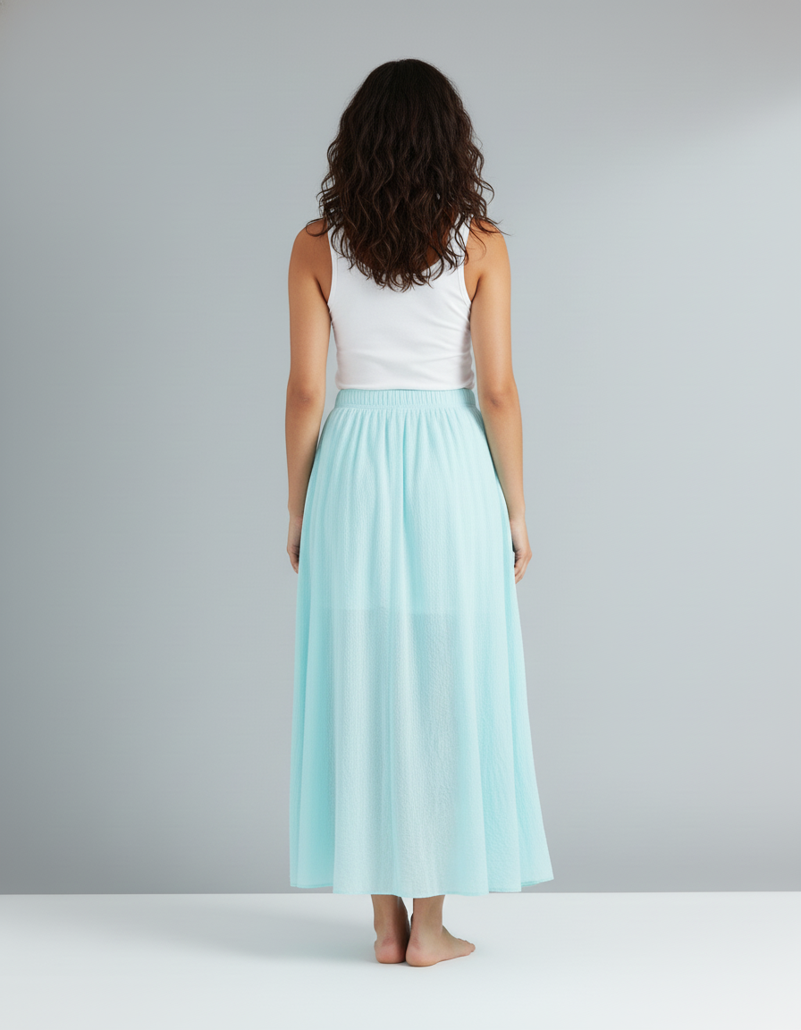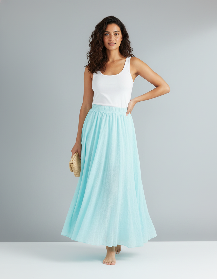Évadez-vous avec notre jupe longue vert d'eau, parfaite pour une allure décontractée et élégante.