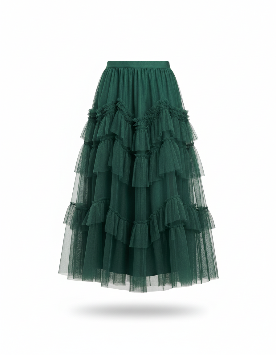 L'Élégance Captivante : Notre Jupe Longue Volants en Tulle Émeraude