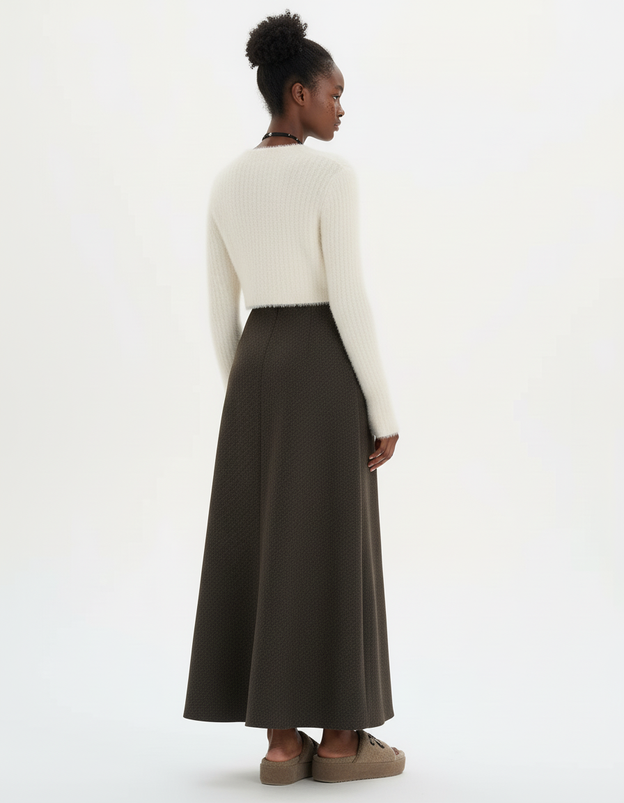 Au-delà de son esthétique raffinée, cette jupe est une promesse de bien-être. Sa maille douce et chaude épouse délicatement la silhouette sans jamais contraindre, offrant une liberté de mouvement absolue. Le tombé évasé, parfaitement étudié, assure une fluidité gracieuse à chaque pas, allongeant la silhouette avec élégance. Confortable et chic, elle deviendra vite votre alliée privilégiée pour traverser l'hiver avec style et assurance, sans compromis sur le confort.
