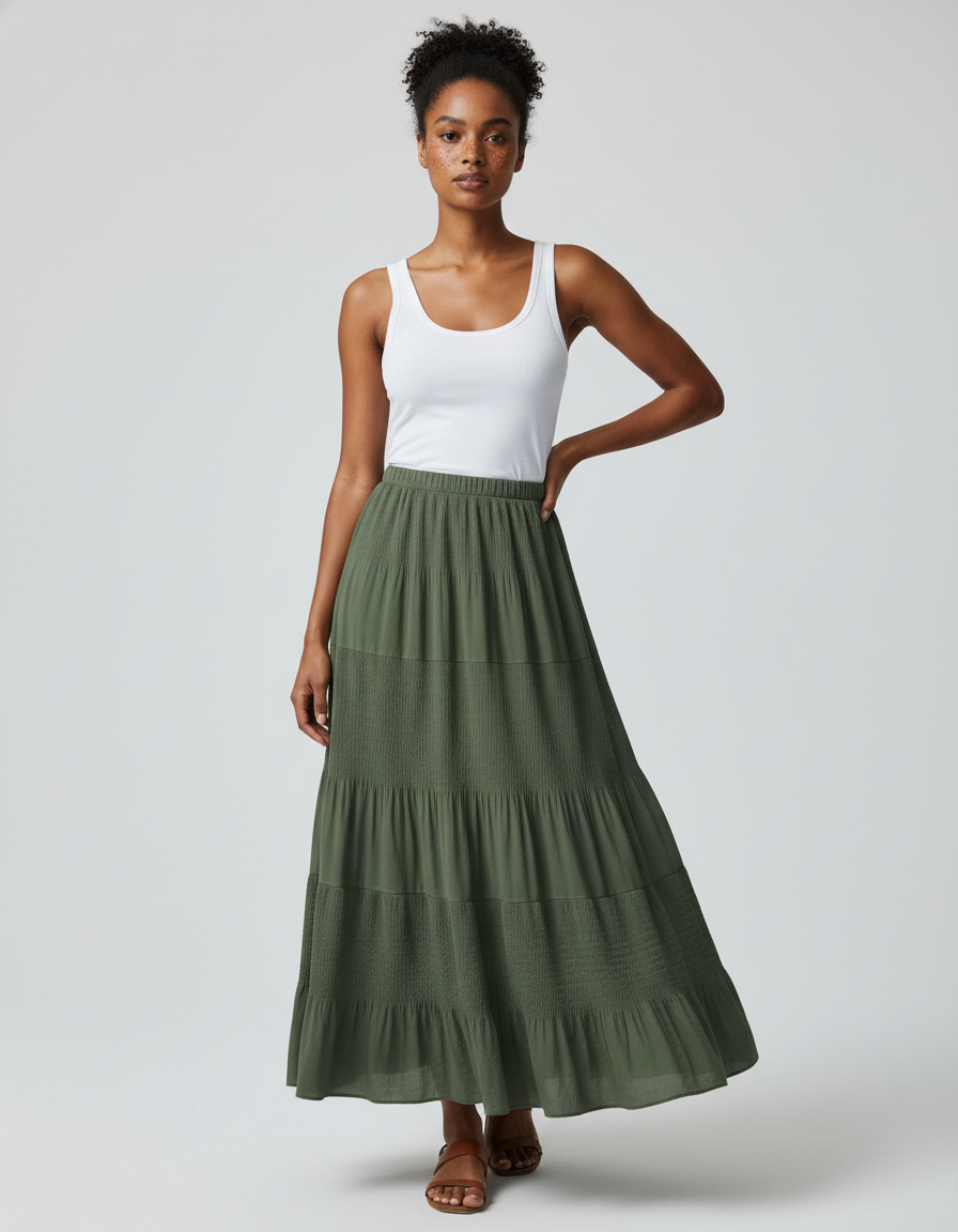 Jupe Longue Vert Kaki Plissée Fluide : L'Élégance Décontractée Réinventée