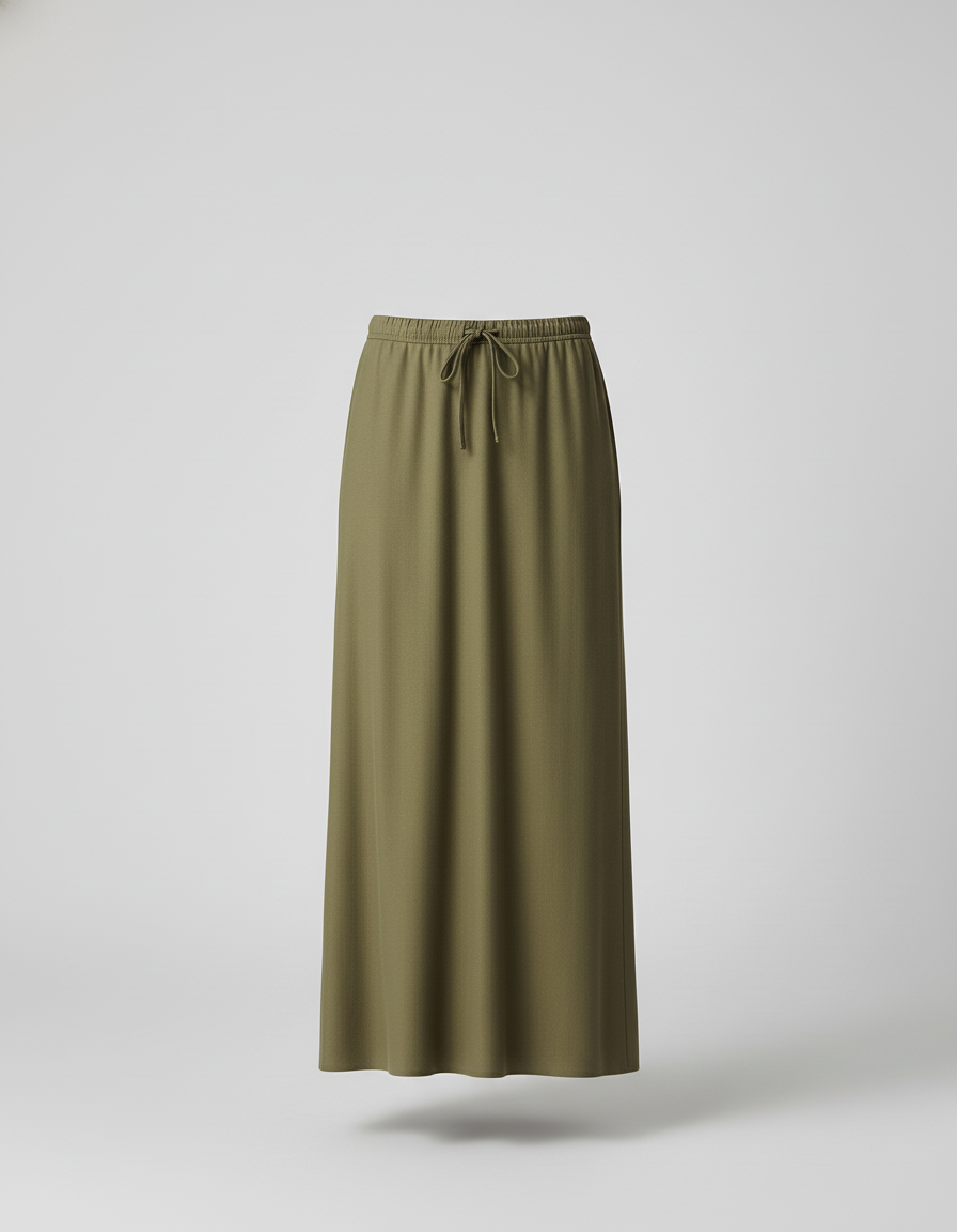 Cette Jupe Longue Vert Olive Fluide peut être portée au quotidien ou pour des occasions décontractées. Sa coupe simple la rend adaptable à diverses situations.