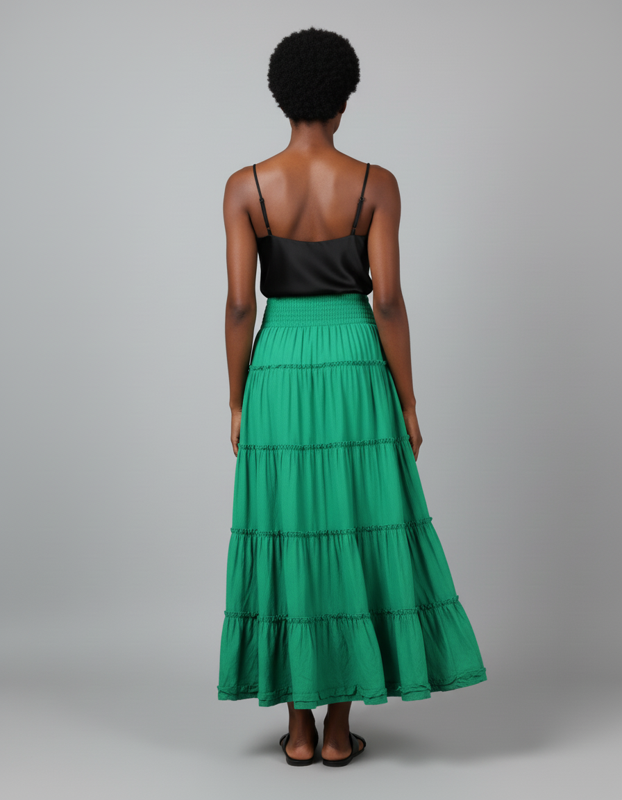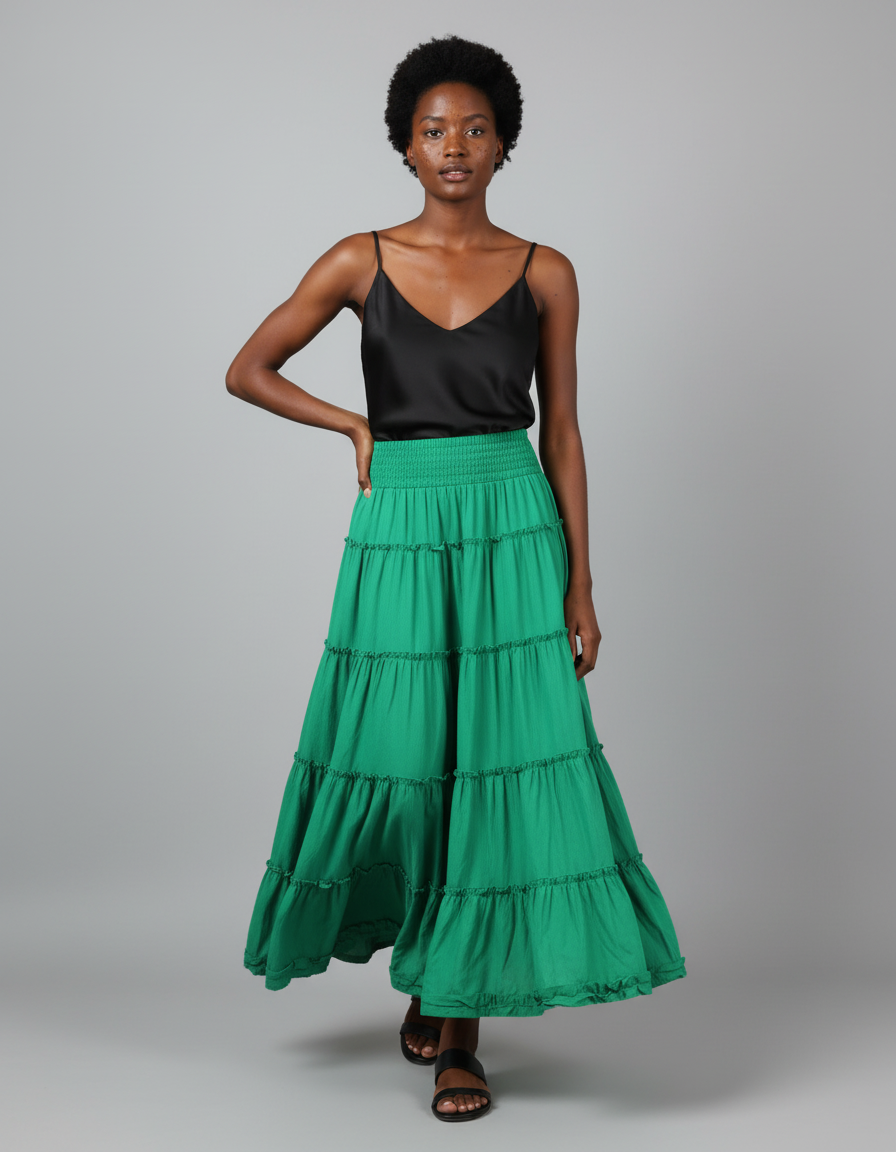 La Jupe Longue Verte à Volants Bohème : L'Art de la Silhouette Fluide