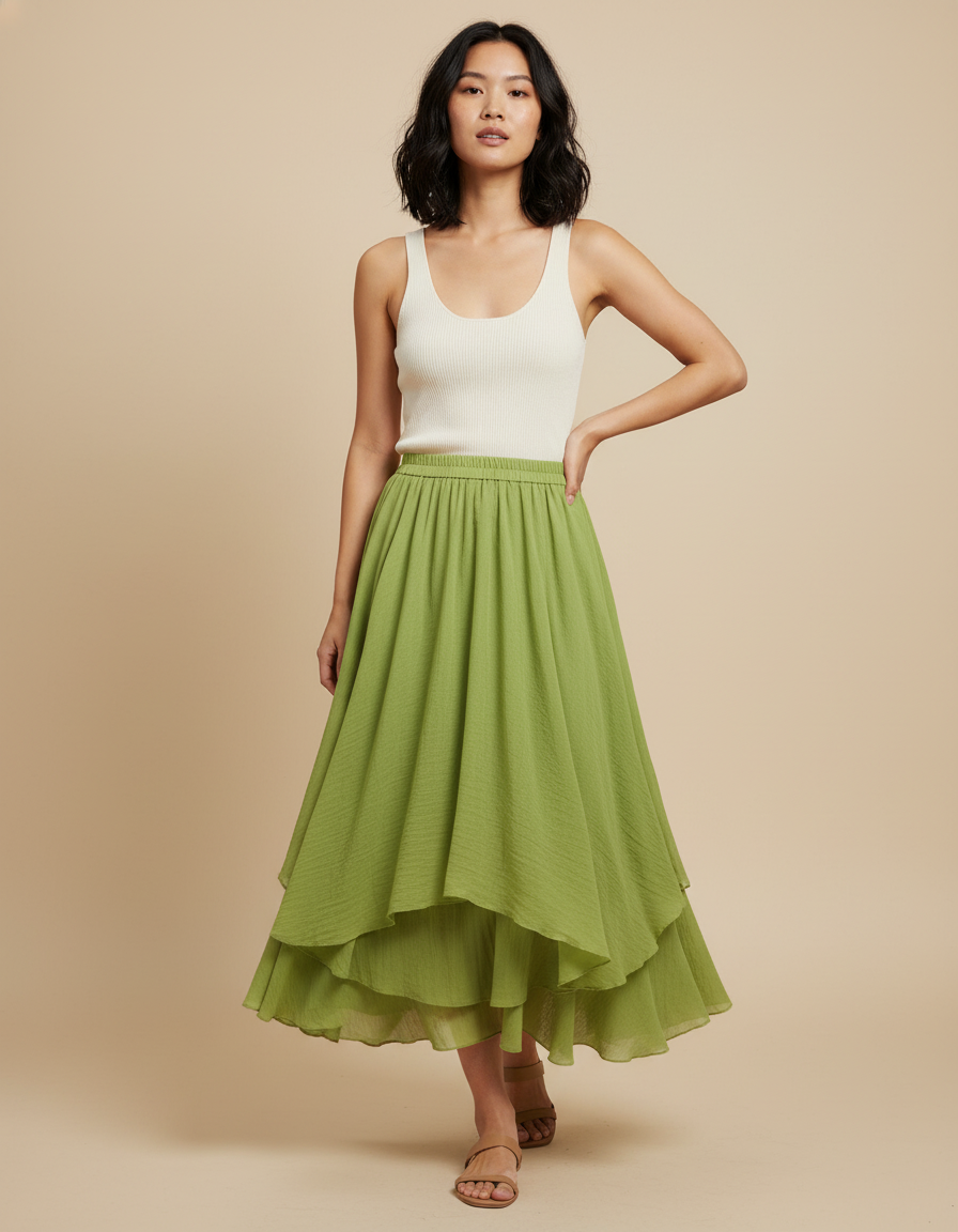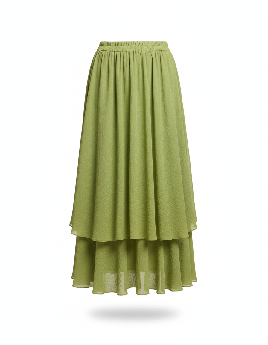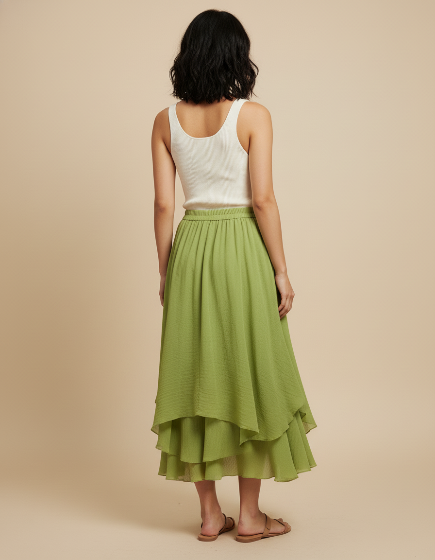 L'Élégance Fluide Réinventée : La Jupe Longue Verte Étagée