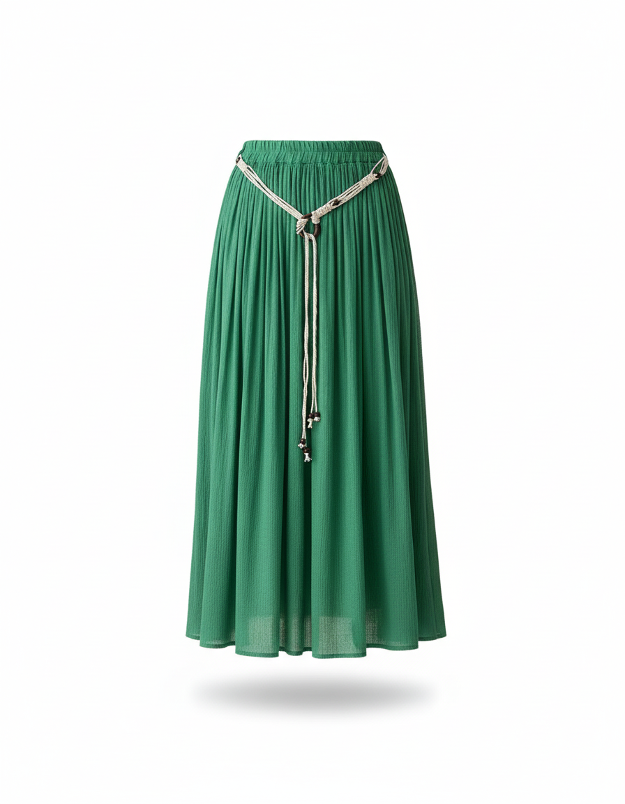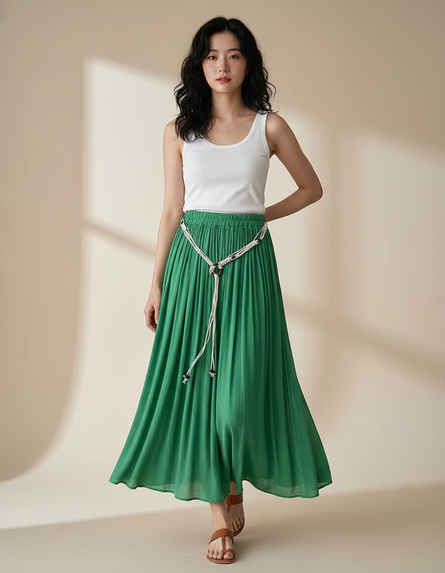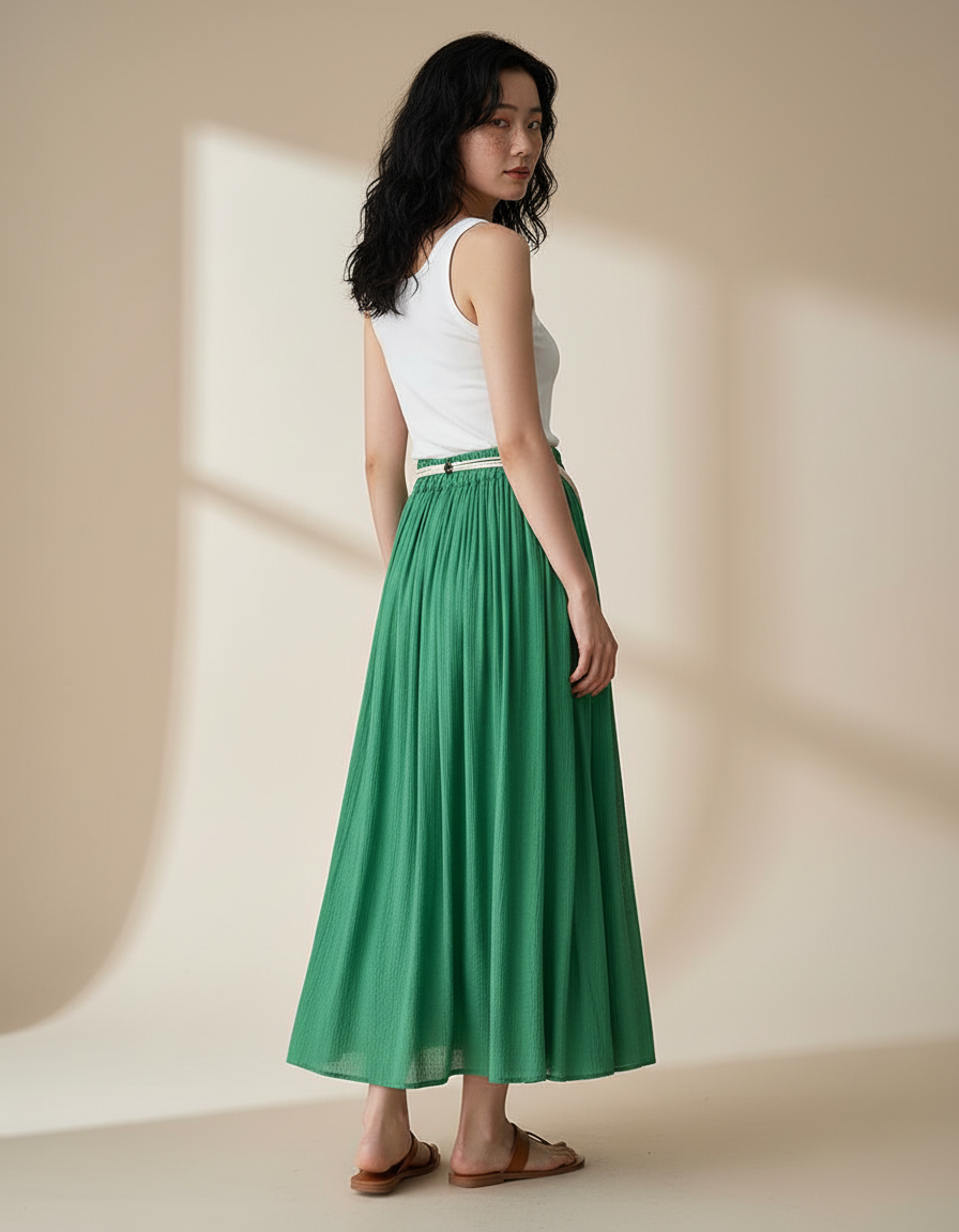 La Jupe Longue Verte Plissée Fluide : L'Élégance Bohème Réinventée