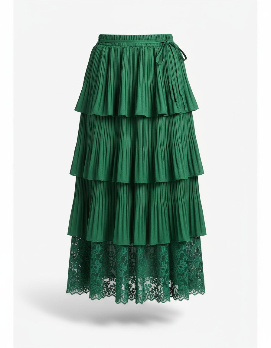 Jupe Longue Verte Plissée Fluide Chic : L'Élégance En Mouvement