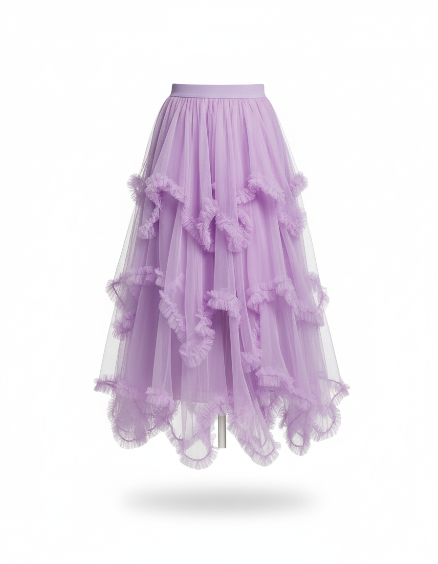 Votre Moment de Grâce : La Jupe Longue Violette en Tulle à Volants