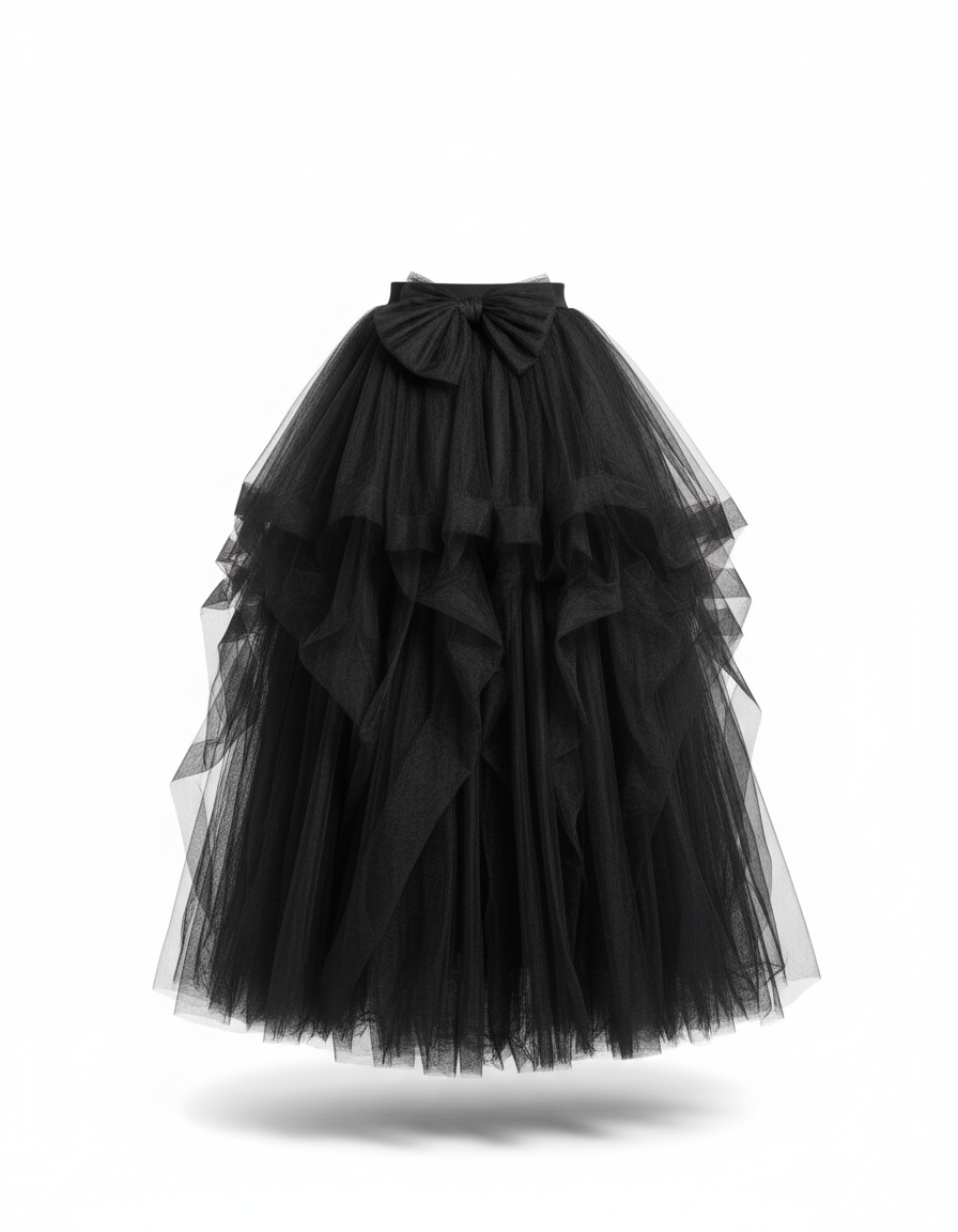 Ce qui la distingue ? L'alliance parfaite entre le volume dramatique de ses volants en tulle multicouche et une fente haute, audacieusement placée, qui dévoile subtilement la jambe. Loin d'une simple jupe, c'est une œuvre d'art textile qui sculpte la silhouette, allongeant la ligne et conférant une allure à la fois puissante et délicate. Chaque détail est pensé pour un luxe concret : un tombé impeccable, une légèreté surprenante et une fluidité qui accompagne chacun de vos pas, vous assurant une entrée remarquée et inoubliable.