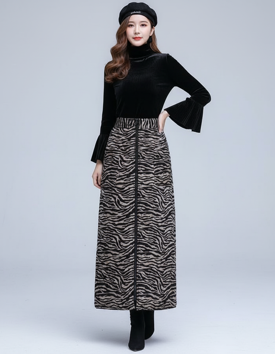 Adoptez l'Audace Chic de l'Hiver avec la Jupe Longue Zèbre