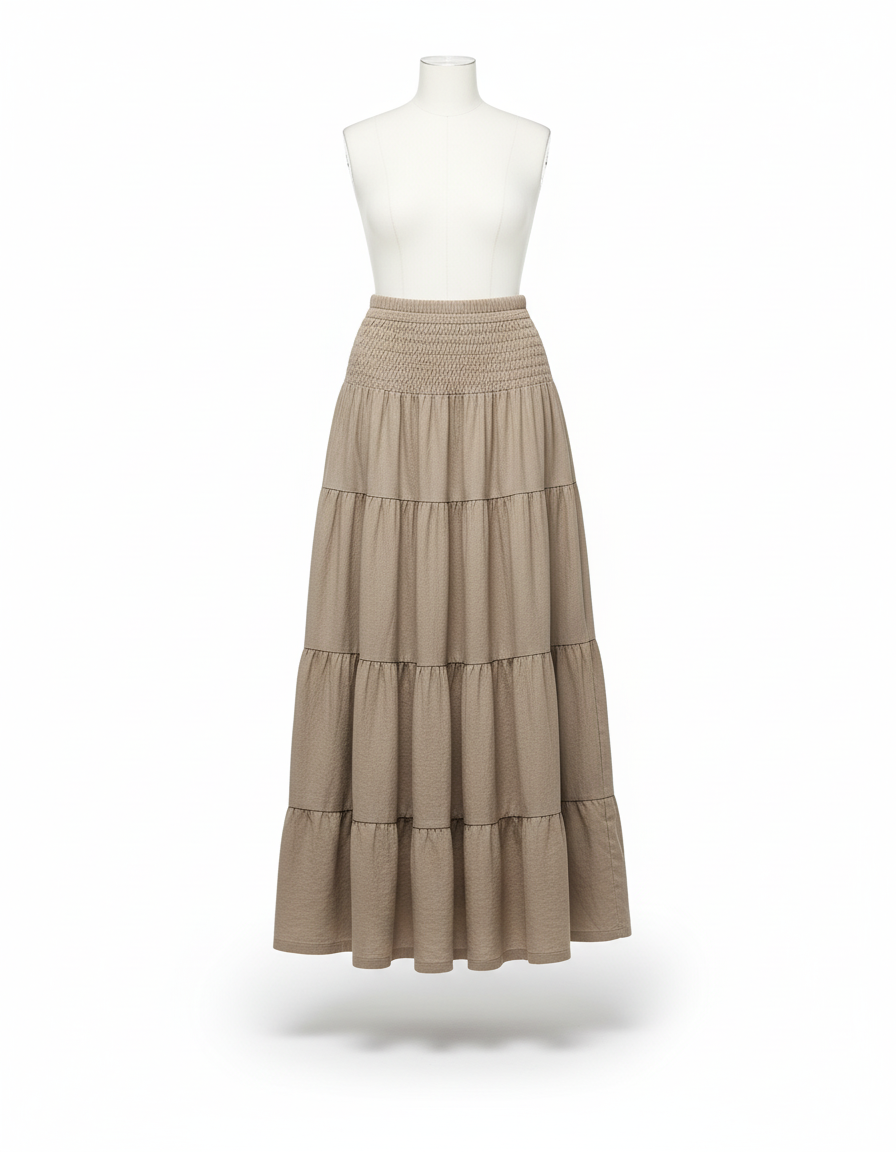 Cette jupe longue est destinée aux tenues d'été. Elle convient pour des vacances, des sorties à la plage ou un usage décontracté.