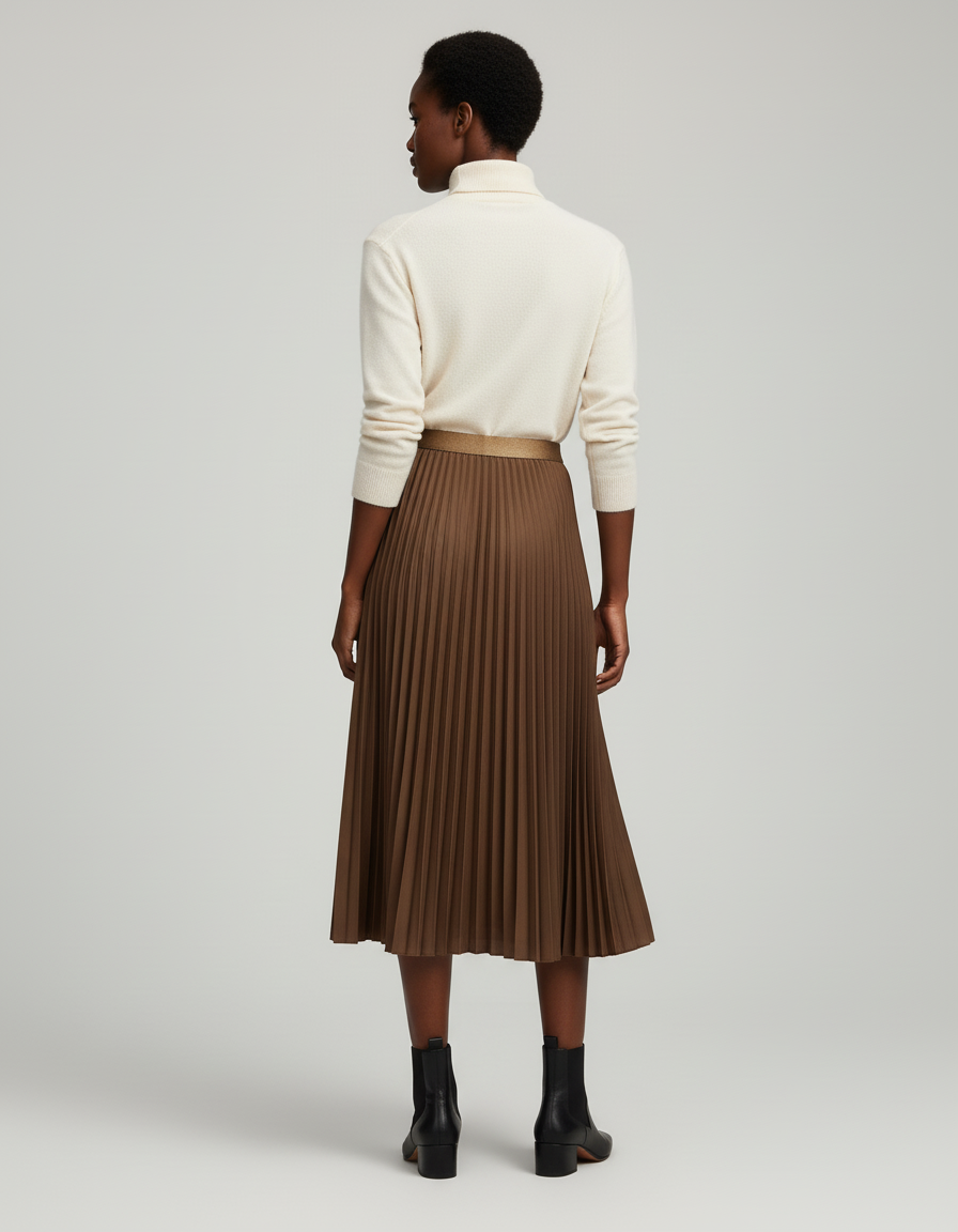 La Jupe Plissée Marron Longue : Une coupe ample et fluide