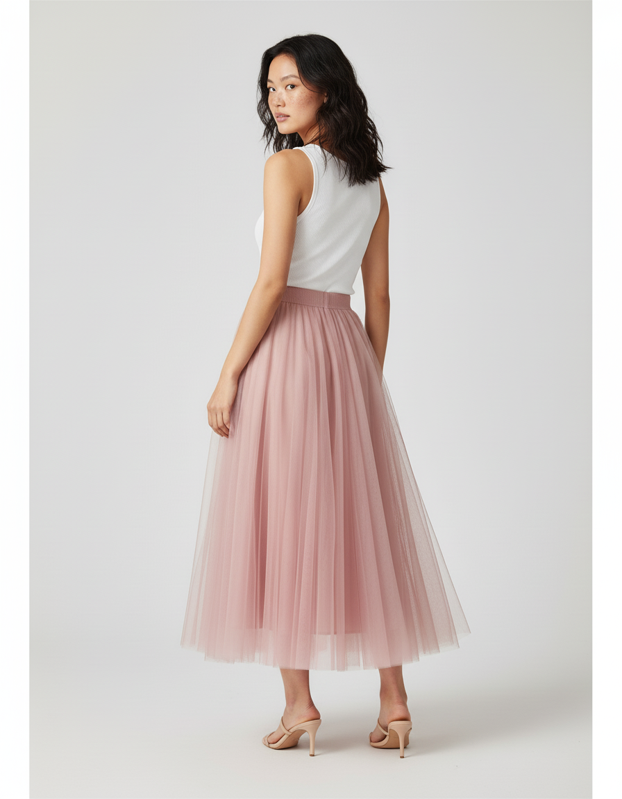 Ce qui distingue notre jupe, c'est l'alliance parfaite entre un design intemporel et une confection de pointe. Son tulle de haute qualité, méticuleusement plissé, crée un volume aérien sans alourdir la silhouette, garantissant un tombé impeccable qui flatte toutes les morphologies. La teinte rose poudré, à la fois douce et affirmée, offre une polyvalence remarquable, se prêtant aussi bien à un style décontracté chic qu'à une allure de soirée raffinée. Oubliez les compromis : la "Jupe Plissée Voile Longue" est un investissement dans un luxe concret, une jupe qui ne se contente pas d'être portée, mais qui se vit.