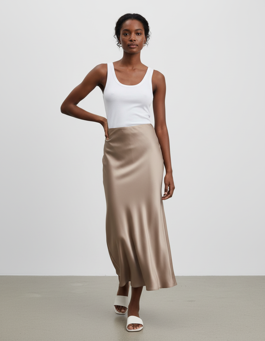 La Jupe Satinée Longue : L'Élégance Fluide pour Chaque Instant