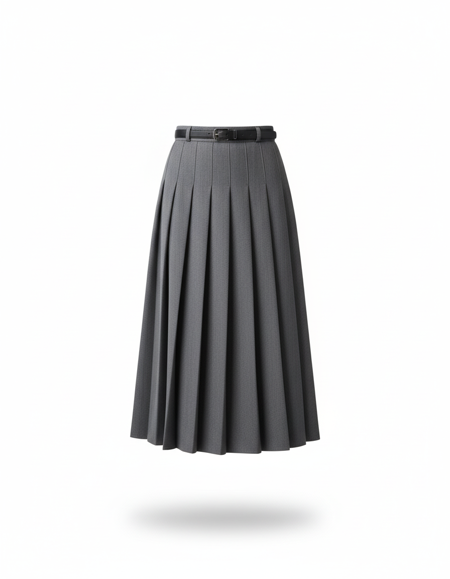Découvrez notre Jupe Tailleur Mi-Longue, une pièce maîtresse conçue pour la femme moderne qui ne transige ni sur l'élégance ni sur le confort. Confectionnée dans une laine de qualité supérieure, cette jupe taille haute grise et plissée incarne la sophistication discrète. Elle offre une silhouette impeccable, alliant la rigueur du tailleur à la fluidité du plissé, idéale pour celles qui recherchent une tenue polyvalente, parfaite pour le bureau comme pour une sortie raffinée.