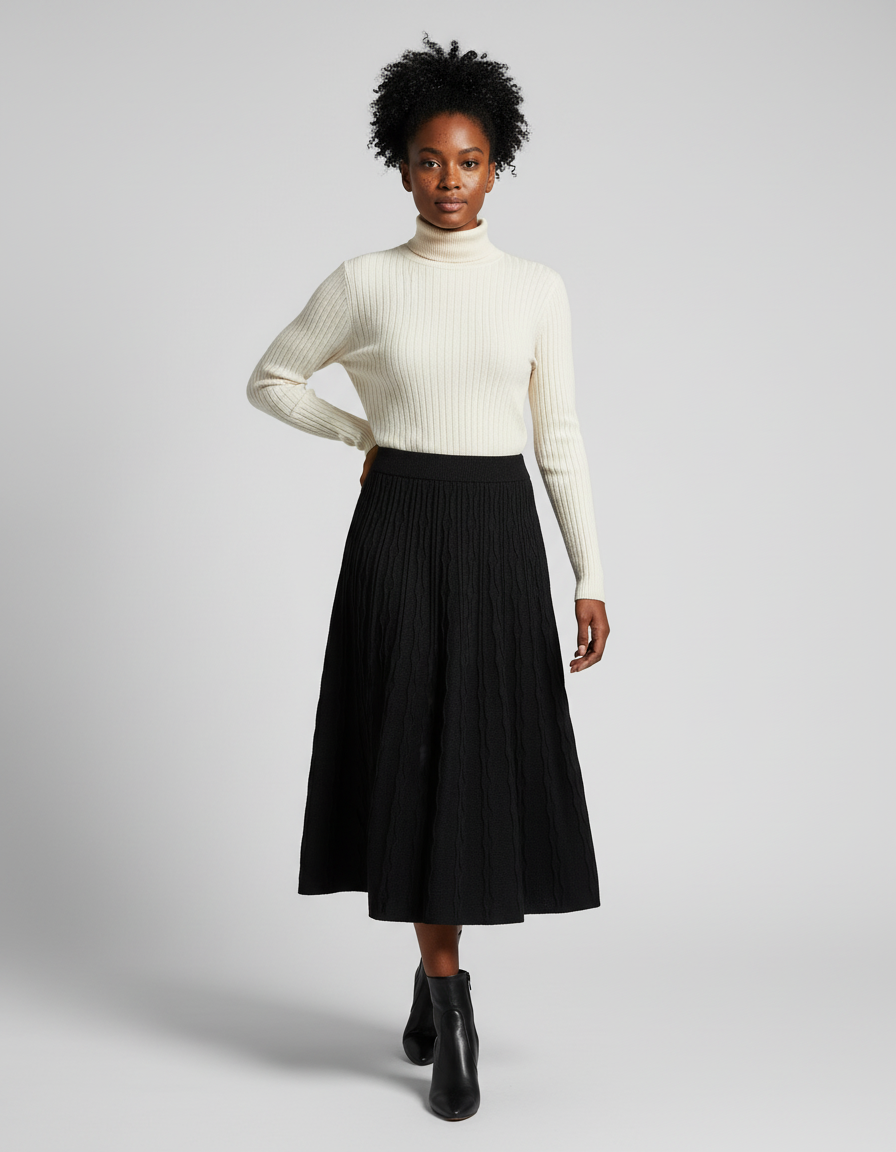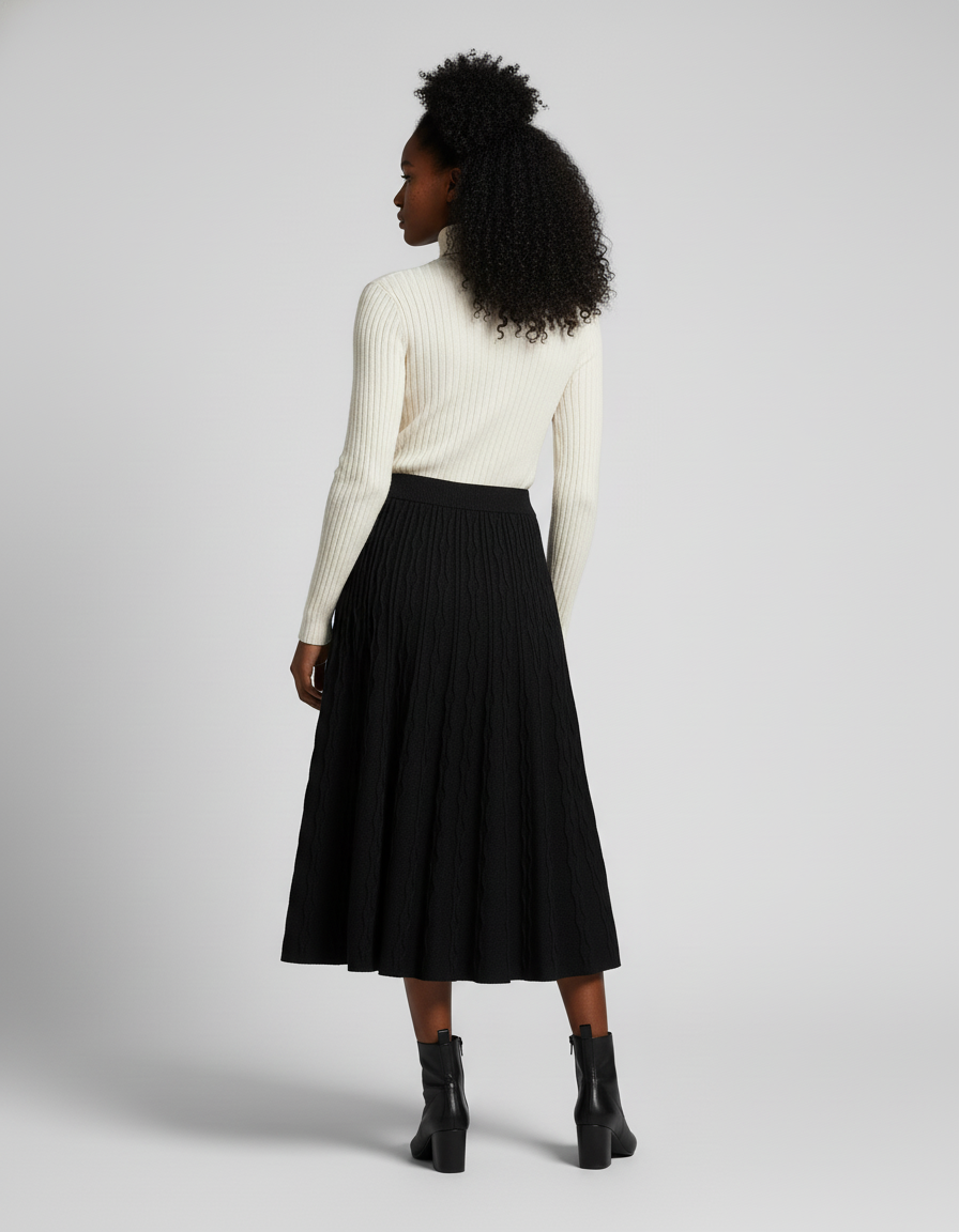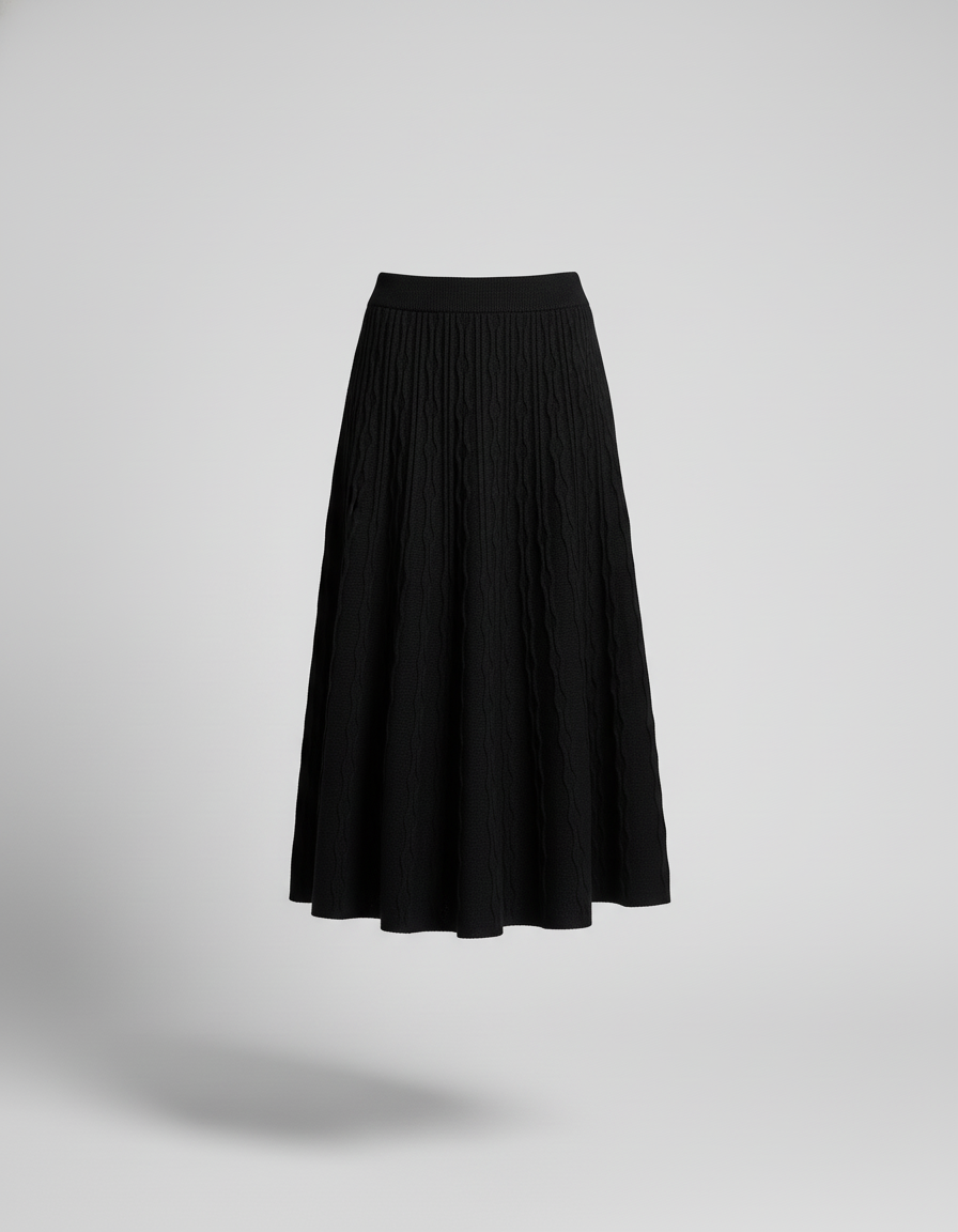 La Jupe Trapèze Noire Mi-Longue avec texture tricotée
